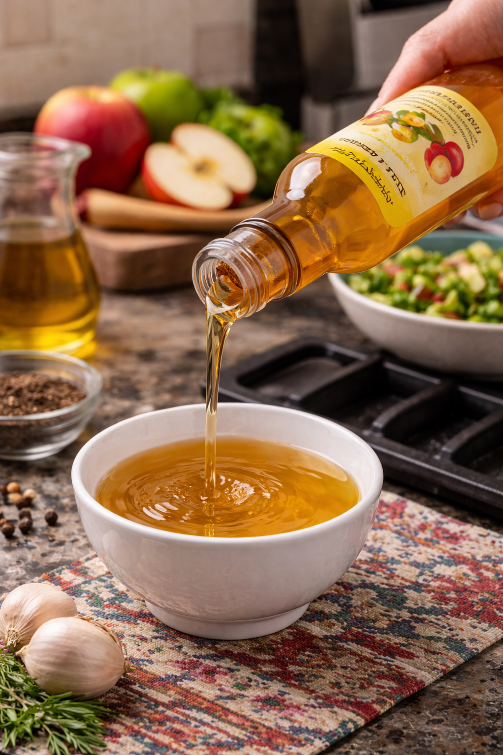 خل التفاح البلدي يُحضّر من تخمير التفاح الطبيعي دون مواد حافظة، ويتميز بطعمه الحامضي المعتدل وفوائده الصحية المتعددة.
